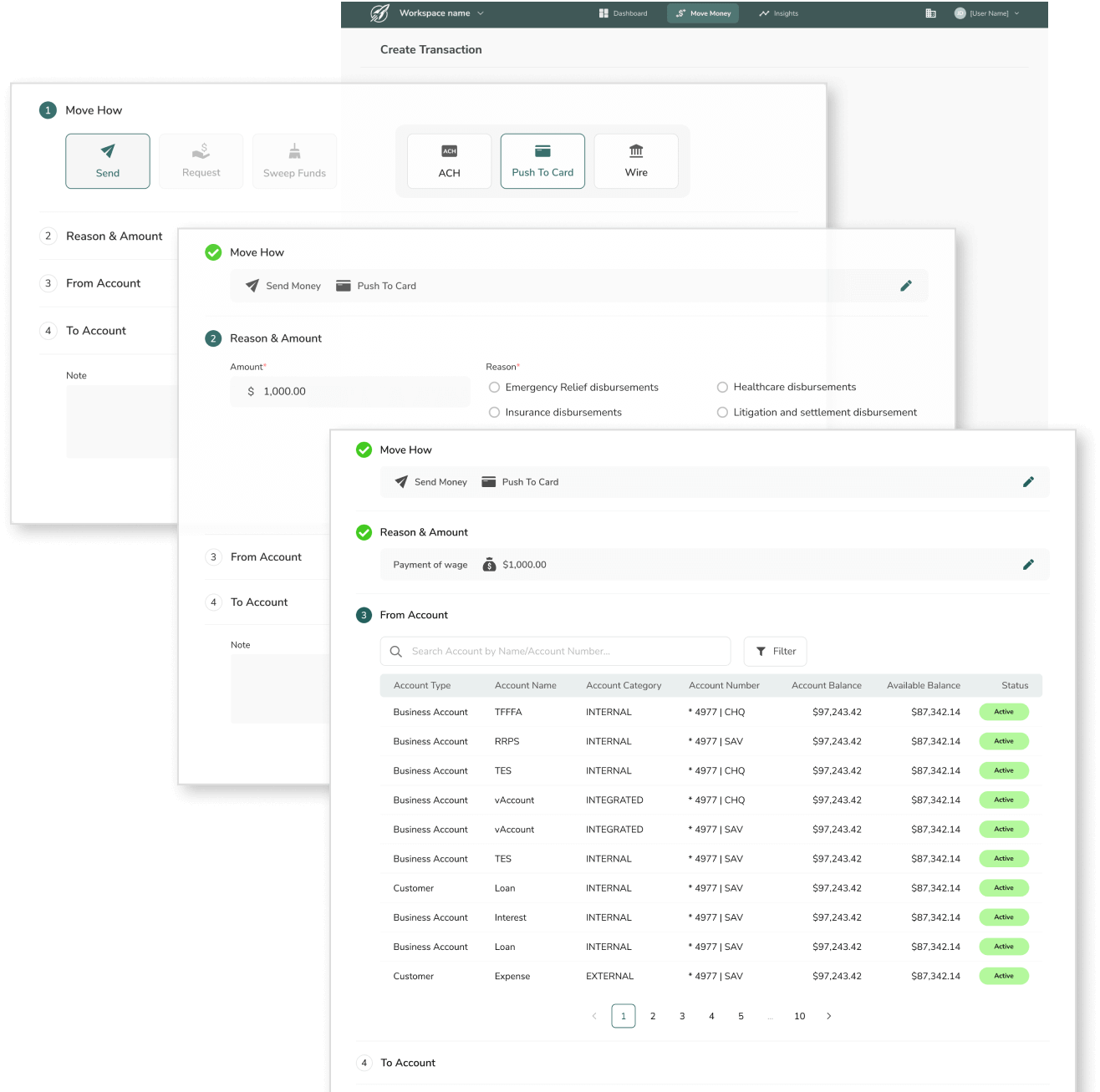 Simple Transfers: Seamlessly create ACH, Wire, or Push2Card transactions within PrimaryAccount, simplifying the process of transferring money between accounts